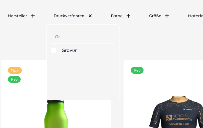 Deine Kunden haben nun automatisch die Möglichkeit, innerhalb der Filter gezielt nach bestimmten Optionen zu suchen. Dadurch wird die Navigation in deinem Shopware-Shop deutlich verbessert – für eine optimierte Benutzererfahrung und potenziell höhere Konversionsraten.