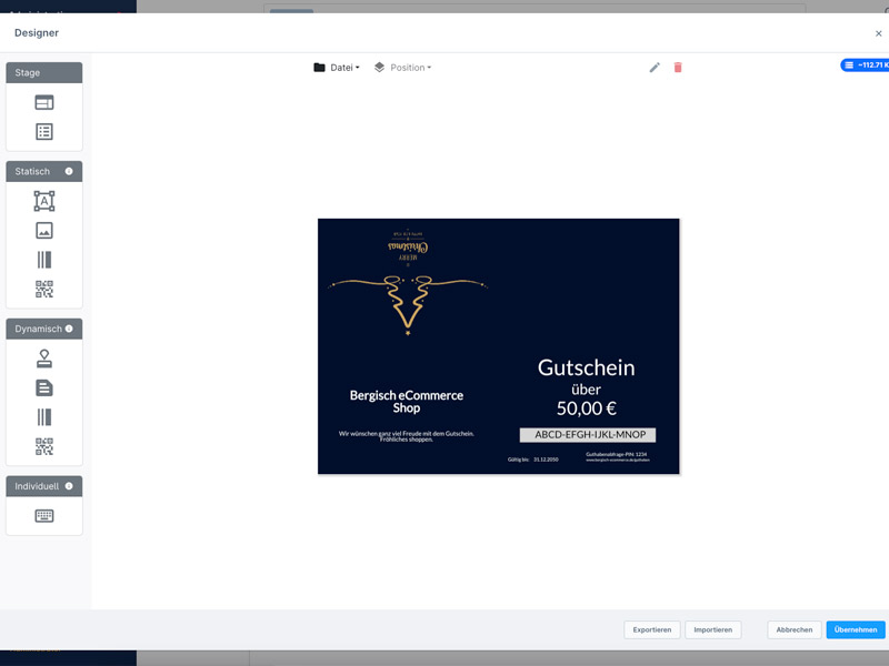 Mit dem Gutscheindesigner kannst du Gutscheine ganz nach deinen Wünschen gestalten. Passe Logos, Farben und Texte an – für ein einzigartiges Einkaufserlebnis. Perfekt für personalisierte Geschenke und maßgeschneiderte Branding-Möglichkeiten!