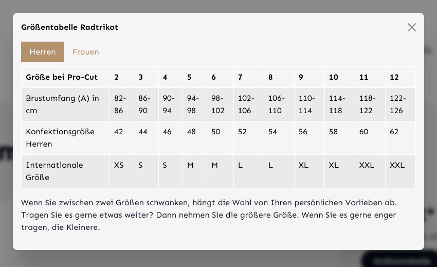 Dank der flexiblen Konfigurationsmöglichkeiten kannst du eine Größentabelle über Hersteller, Kategorien, Produkte oder auf Basis einer dynamischen Produktgruppe direkt den Artikeln zuweisen. Die benutzerfreundliche Darstellung hilft deinen Kunden, die richtige Größe zu finden, und reduziert so Retouren durch falsche Größenangaben.