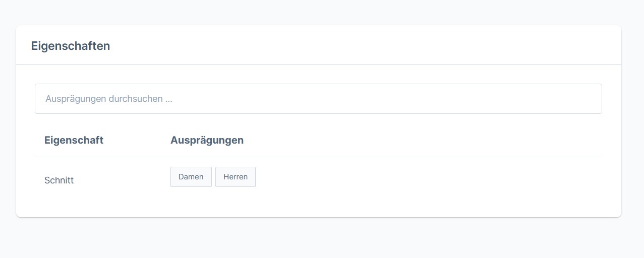 Vergleich aller Eigenschaften