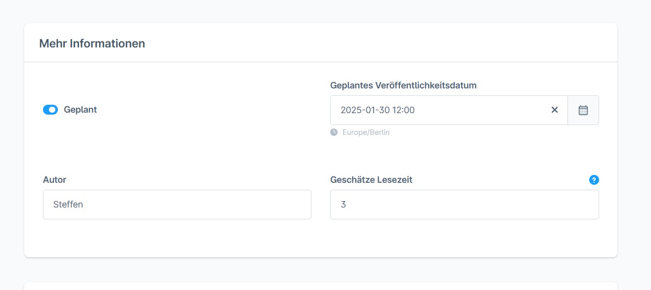 Blogbeiträge können mit einem Veröffentlichungsdatum versehen werden, sodass sie automatisch zu einem bestimmten Zeitpunkt online gehen. Das ist besonders praktisch für Kampagnen oder regelmäßige Veröffentlichungen, da Inhalte im Voraus erstellen und geplant werden können.